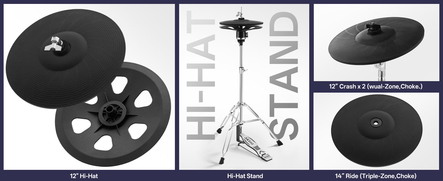Two-Piece Independent Hi-Hat System: This authentic two-piece hi-hat features 12" bottom and top cymbals with high-resolution sensors that precisely tracks every foot splash, tight chick, and half-open articulation just like an acoustic hi-hat. The weighted bottom cymbal provides natural resistance and rebound, while the responsive top cymbal delivers dynamic range from whisper-soft strokes to powerful accents.