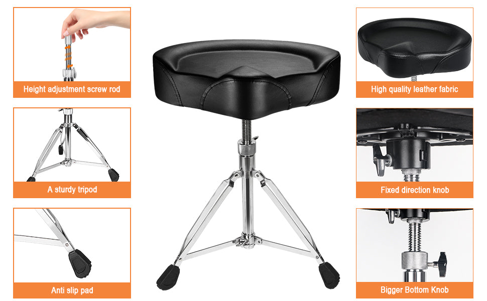 Motorcycle style drum stool, suitable for adult drummers, height adjustable and made of high-quality leather, waterproof and easy to clean, high-end atmosphere