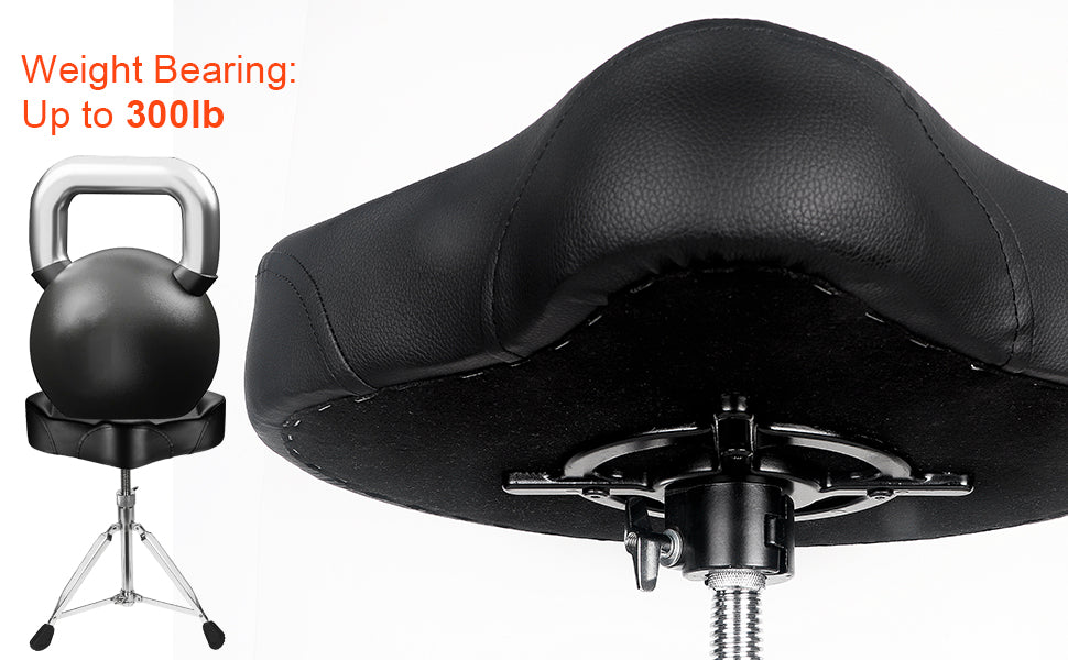 - 【Leather Saddle-Shaped Drum Stool】 Made of high-quality black PU leather, it is simple and elegant; easy to clean; the saddle-shaped drum stool is more ergonomic; the interior is filled with high-density soft sponge, which is soft, breathable, not easy to deform, has strong support and reduces fatigue.