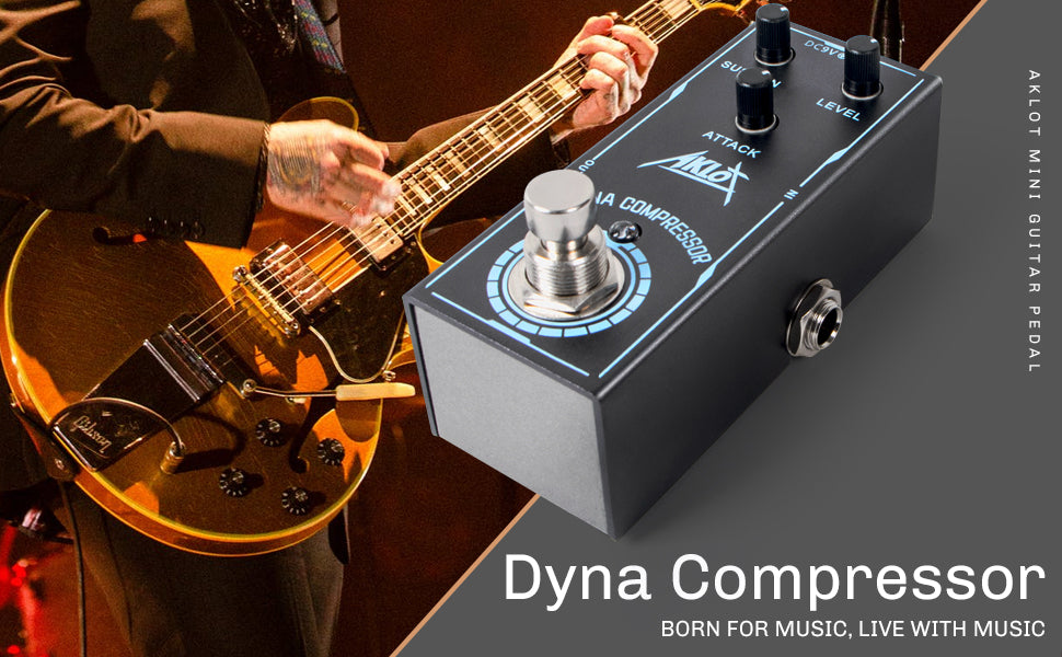 - 【Easy Carry】Powered by a DC 9V adapter (not included in this package),this Dyna Compressor pedal has a small size body, light weight, suitable for out side gigs.