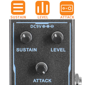 - 【Pure Signal】True bypass switching maintains pure signal flow when the compressor pedal disengaged. Dedicated Sustain & Level & Attack knobs allow for precise effect tailoring.