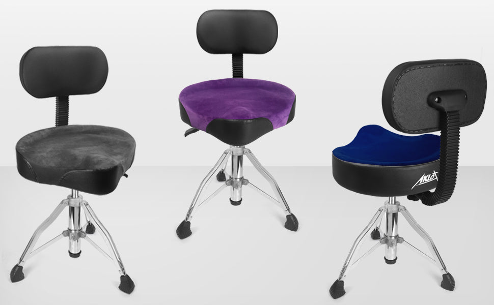 - [Product Size] The drum chair sponge is 9.5 cm thick, 43.5 cm wide and 39 cm long; the backrest is 13.2 in long and 7 in wide, with three holes to adjust the backrest and seat width; the height can be adjusted between 17-24 inches; the maximum range of the tripod is 22 inches; the size is precisely calculated to provide you with the best experience.