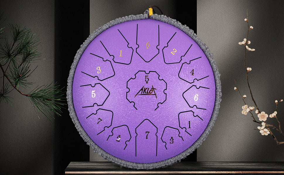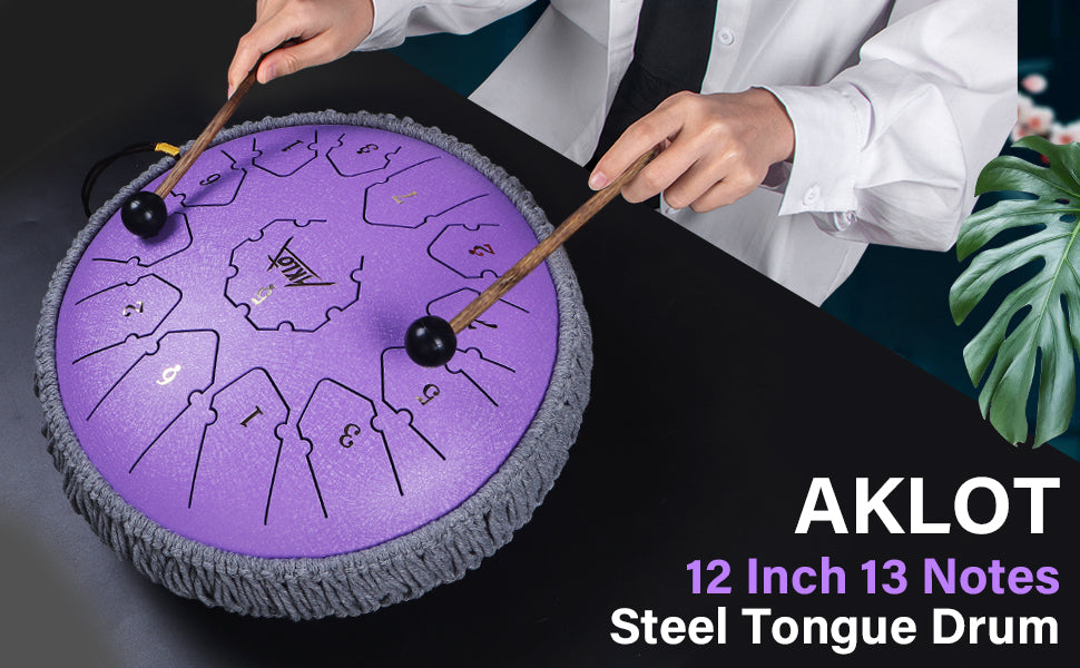 AKLOT steel tongue drum adopts titanium alloy as material, which has more strength, better corrosion resistance and heat resistance than carbon steel ones. Featuring in 13 notes standard major C key with a wider range of sounds, it allows new beginners and professional players to play different kinds of songs. The tone of steel tongue drum is ethereal and melodious, and the timbre is very stable. Normally, steel tongue drum is widely used for spiritual healing and emotion release.