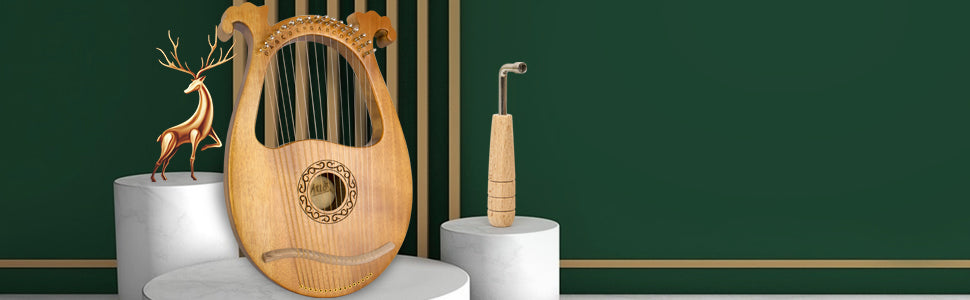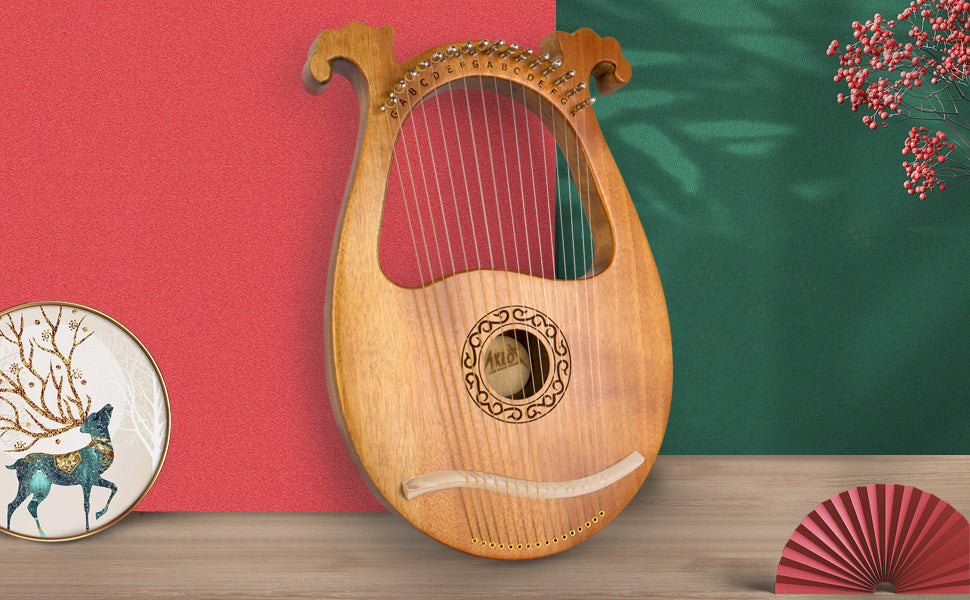 - MATERIAL: Aklot lyre harp is carved from a piece of Okoume. High hardness and density wood is strong enough to keep it in tone and avoid the string force into the wood. The instrument has warm sound with a pleasant tone.