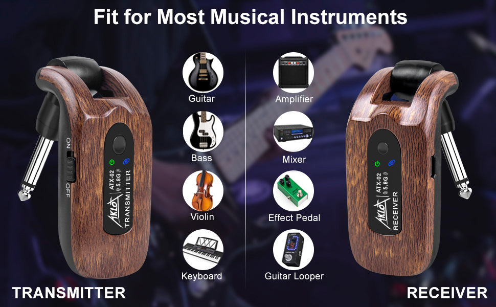 - 30m Stable & Clear Signal Transmission : Our guitar wireless system apply 5.8GHz Chip, uncompressed signal transmission, low noise, and latency, the effective range is about 30 meters