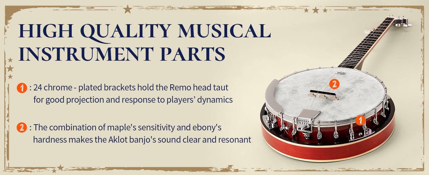 Removable Sound Resonator: The detachable resonator design allows you to freely adjust the banjo's volume and tone. The closed-back design delivers greater volume and a richer, more mature sound, while the open-back offers a traditional, folk-style tone. Whether you're playing classic bluegrass or exploring other genres, this banjo showcases exceptional versatility and performance.
