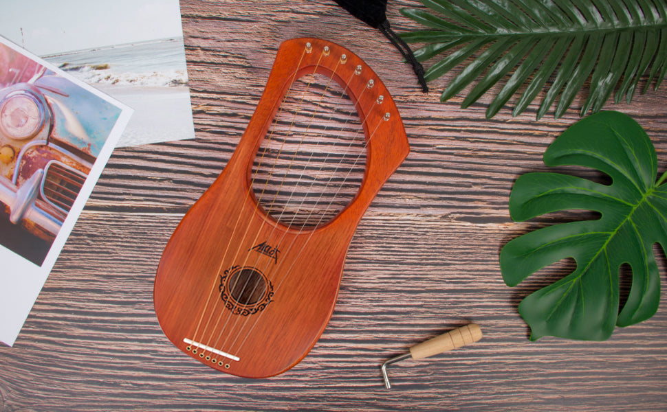 - 【WOODEN LYRE HARP】Aklot lyre harp is carved from a piece of Mahogany. High hardness and density wood are strong enough to keep it in tone and avoid the string forced into the wood. The instrument is warm voiced with a pleasant tone.