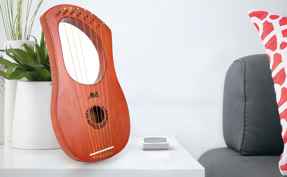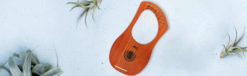 - 【7 STEEL STRINGS】The 7 metal string lyre harp is equipped with durable steel strings. The tone is ringing and can fill in a whole room. The shorter the string is, the higher tone you'll get. And so does the tension of strings.