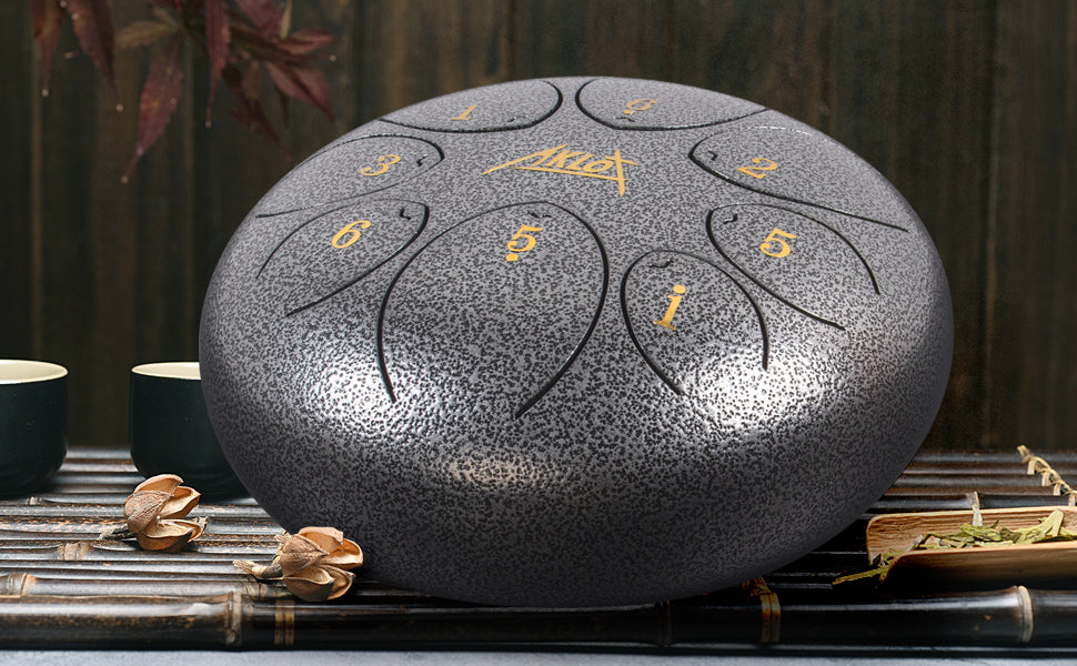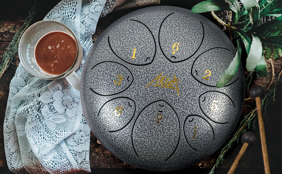 AKLOT steel tongue drum adopts titanium alloy as material, which has more strength, better corrosion resistance and heat resistance than carbon steel ones. Featuring in 8 notes standard major C key with a wider range of sounds, it allows new beginners and professional players to play different kinds of songs. The tone of steel tongue drum is ethereal and melodious, and the timbre is very stable. Normally, steel tongue drum is widely used for spiritual healing and emotion release.
