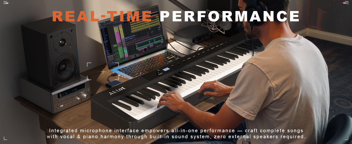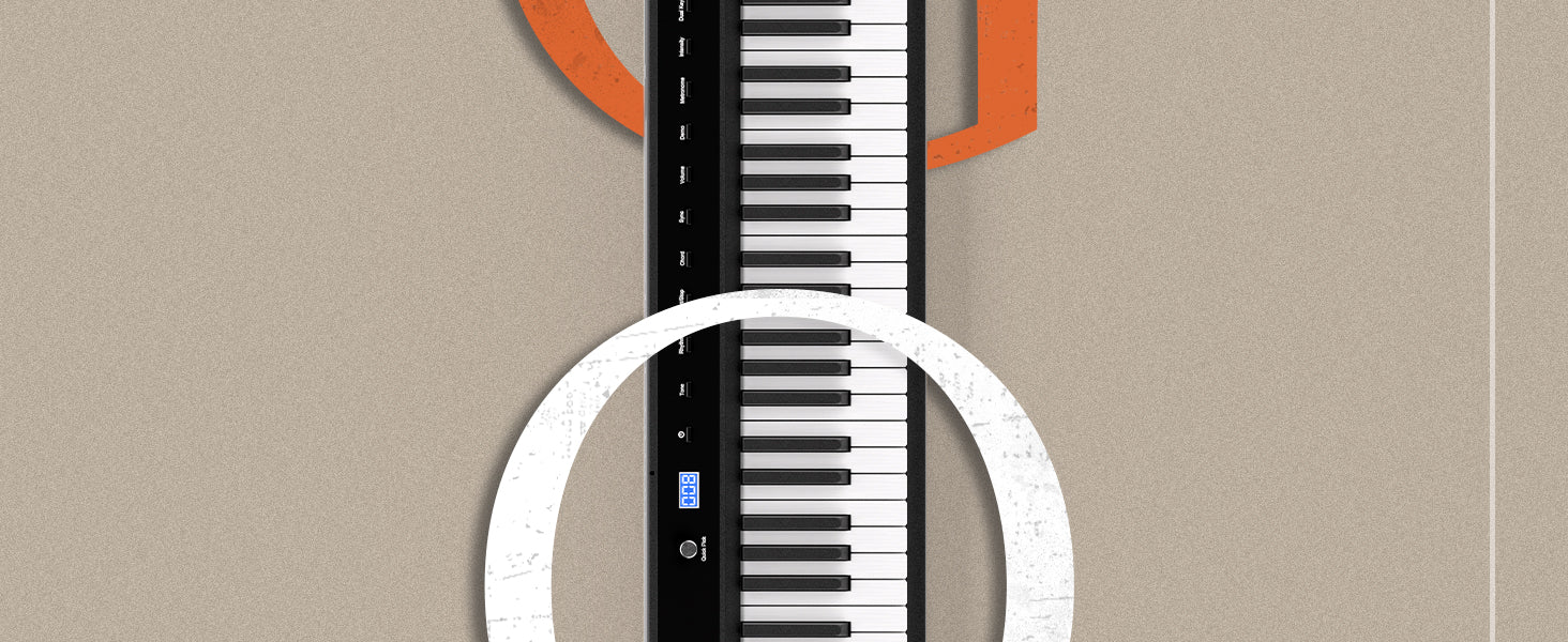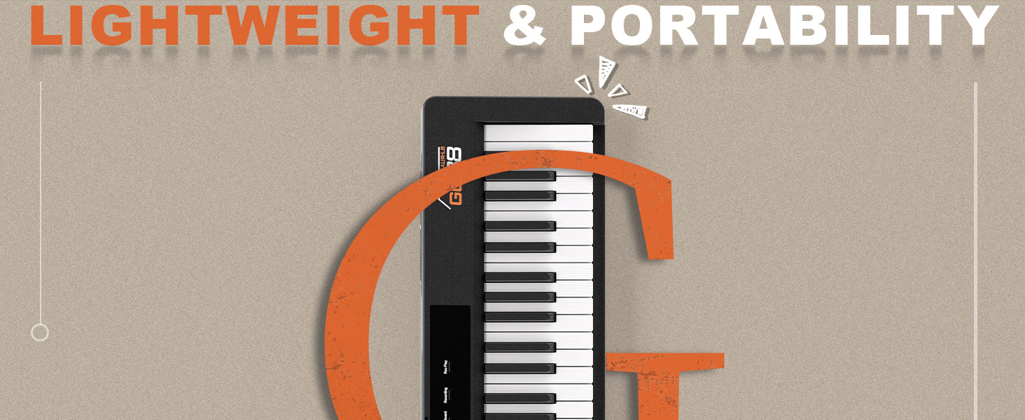 Complete Beginner's Portable Piano Kit: New musicians thrive with our all-inclusive package. Beginner’s piano lesson book, piano keyboard stickers, triple-pedal, keyboard piano cover, studio headphones, and music stand to transform any space into a classroom.