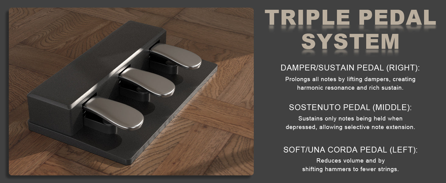 128-Tone Creative Playground: Unlock endless musical possibilities with 128 premium voices spanning concert grands to experimental synths, paired with 128 rhythm patterns across pop, jazz, and EDM genres. Eighty professionally-recorded demo songs showcase the digital piano's capabilities while providing structured learning material. Combined with triple pedal system and MIDI connectivity, this sonic arsenal empowers beginners to pros in crafting studio-quality performances.