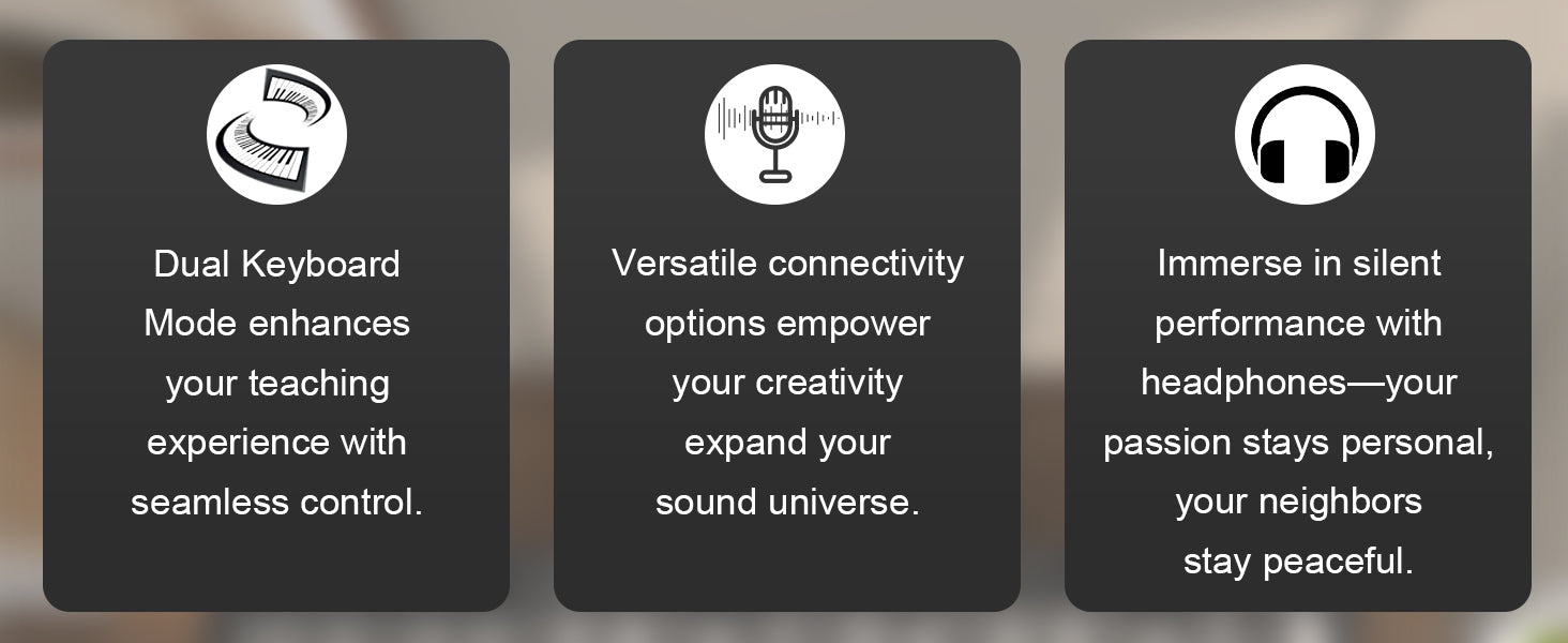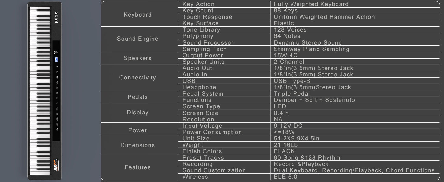 Immersive Dual Speaker Sound Quality: Experience room-filling acoustics through dual 15W 4Ω speakers engineered with advanced anti-distortion technology. These powerful built-in drivers deliver crystal-clear audio across all 128 tones, from deep bass resonance to sparkling highs, perfect for both silent headphone practice and lively home concerts. The optimized sound chamber design ensures authentic piano projection whether you're performing classical pieces or modern synth arrangements.