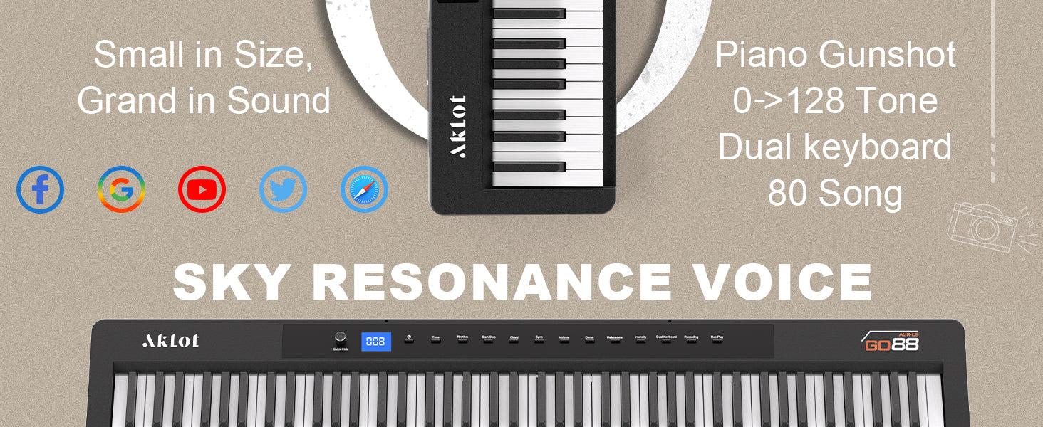 Ultra-Portable Home Design: This lightweight digital piano (21lb) combines sleek durability with space-saving elegance, featuring scratch-resistant plastic construction that moves effortlessly from living rooms to outdoor gigs. Its compact 88-key frame maintains full functionality while blending seamlessly into modern home decor, making it equally suited for apartment practice sessions or impromptu park performances. The reinforced body withstands frequent transport without compromising its polished aesthetic appeal.