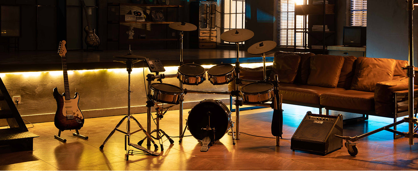 Independent Snare Replicates True Acoustic Feel: The 12" wood snare delivers authentic acoustic response with dual-zone sensitivity, capturing every playing nuance — from crisp rimshots and powerful backbeats to subtle ghost notes and delicate brush sweeps. The triple-ply mesh head with 6-point tension adjustment allows precise customization from tight punch to controlled rebound, mirroring premium acoustic snare performance.