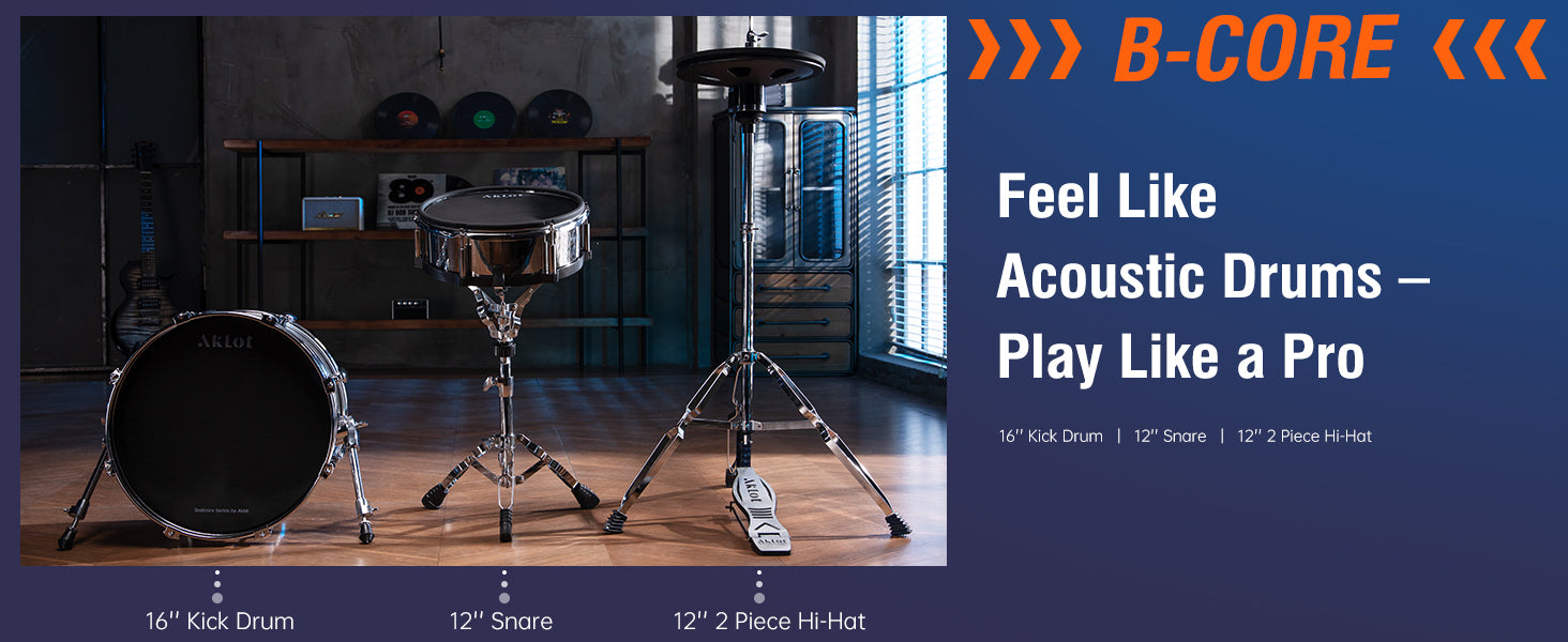 16" Independent Wooden Kick Drum: Experience the authentic response of an acoustic-style kick drum with 16" wood shell, engineered to deliver powerful punch, natural rebound, and deep resonance. The triple mesh head captures every dynamic nuance — from soft jazz grooves to thunderous double-pedal metal strikes — while adjustable head tension let you fine-tune the feel to match your playing style. Featuring solid wooden construction for 30% faster beater rebound, this pro-grade drum is equally at home on noise-sensitive practice sessions or high-energy live performances.