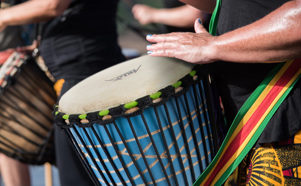 A djembe is a type of West African drum that is goblet shaped. It is traditionally carved from a single piece of wood with a skin stretched over the top.The African drum can provide a wide variety of sounds, making it more and more popular among drummer lovers.Thus here, Aklot African drum manufacturer work harder on offering a professional option!