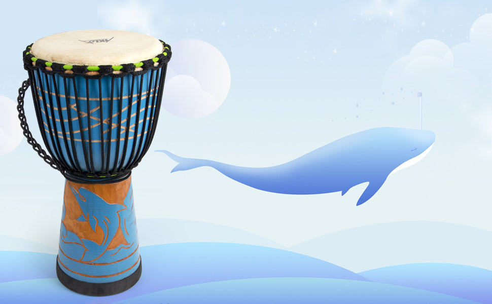 - HAND-CARVED DESIGN: The base section of djembe drum with hand-carved dolphin pattern and other tradditonal element, a symbol of love with adorable looks, adds unique style to your place and let you enjoy the exotic charm.