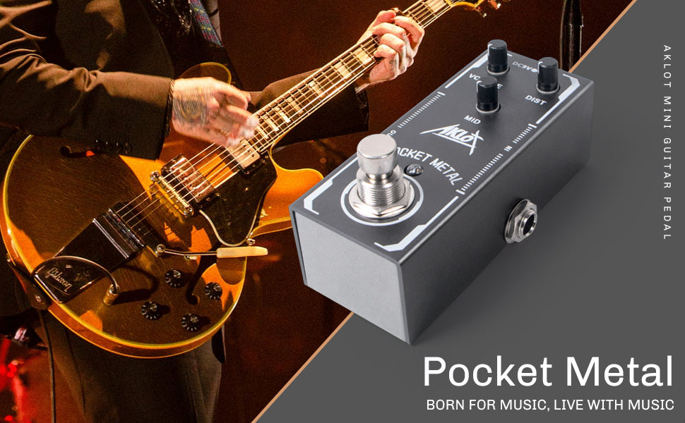 - You can get huge metal distortion sounds from pocket metal pedal, sculpt your sound with the mid adjustment.