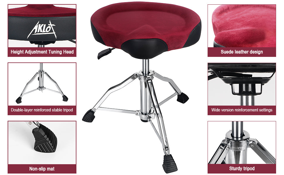 Motorcycle style drum stool, suitable for adult drummers, height adjustable and made of high-quality leather, waterproof and easy to clean, high-end atmosphere